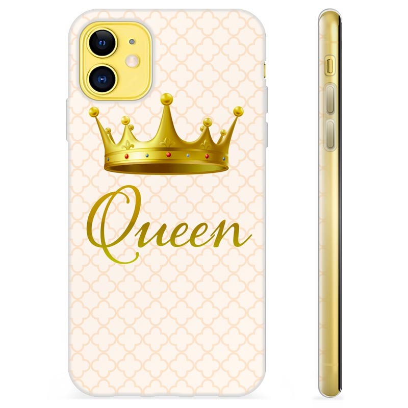 Beskyt din iPhone 11 med stil ved hjælp af dette TPU-cover, der er prydet med et eyecatching design af en gylden krone og ordet "Queen" i et elegant skrift. Dette holdbare og fleksible etui er designet for at absorbere stød og beskytte din telefon mod daglig brug. Det transparente materiale med et diskret mønster i baggrunden tilføjer en ekstra dimension af sofistikation, samtidig med at telefonens originale farve og design skinner igennem. Coverets præcise udskæringer sikrer let adgang til alle knapper og porte, mens de forhøjede kanter giver ekstra beskyttelse til skærmen og kameraet. Det er det perfekte tilbehør for enhver, der ønsker at kombinere beskyttelse med en kongelig flair.