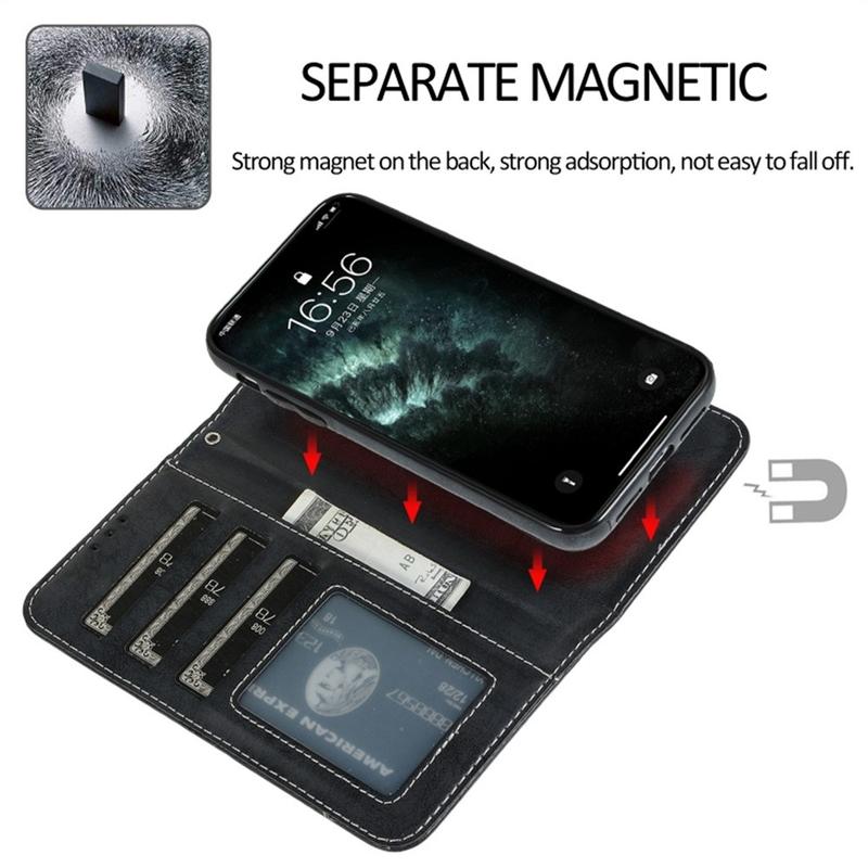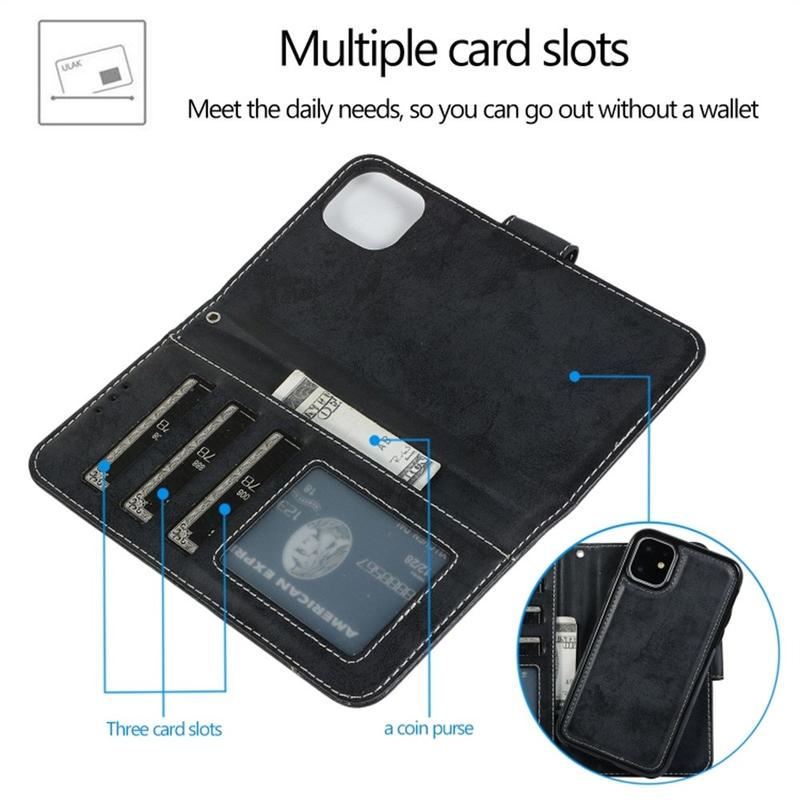 Vintage 2-i-1-tegnebogsetui med aftageligt magnetlåg til iPhone 11