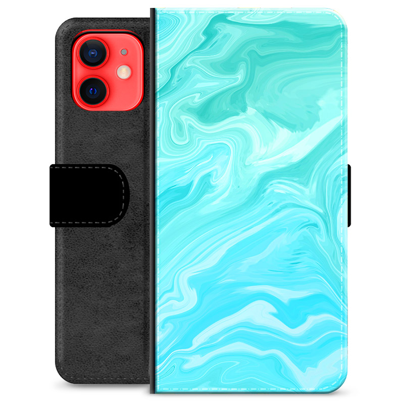 iPhone 12 mini Premium Flip Cover med Pung - Blå Marmor