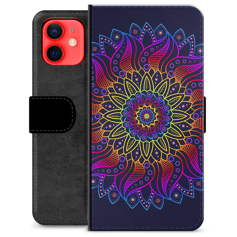 iPhone 12 mini Premium Flip Cover med Pung - Farverig Mandala