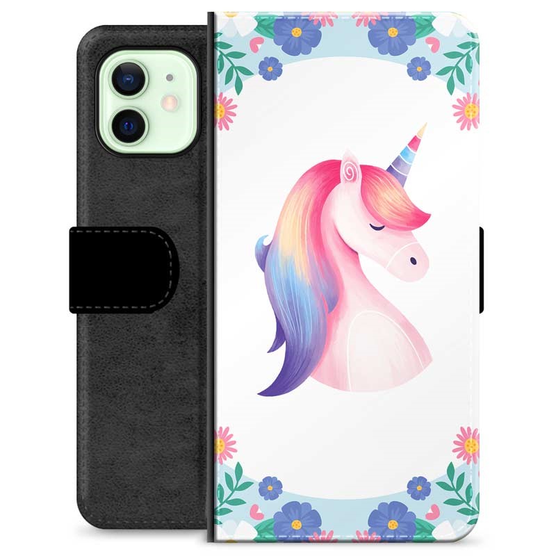 iPhone 12 Premium Flip Cover med Pung - Enhjørning