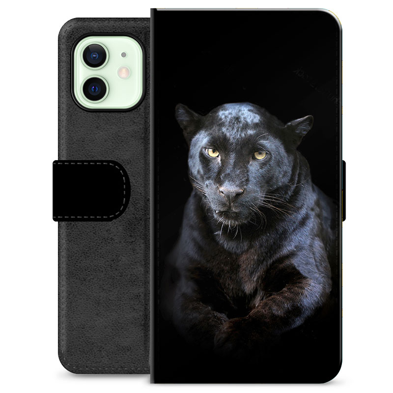iPhone 12 Premium Flip Cover med Pung - Sort Panter