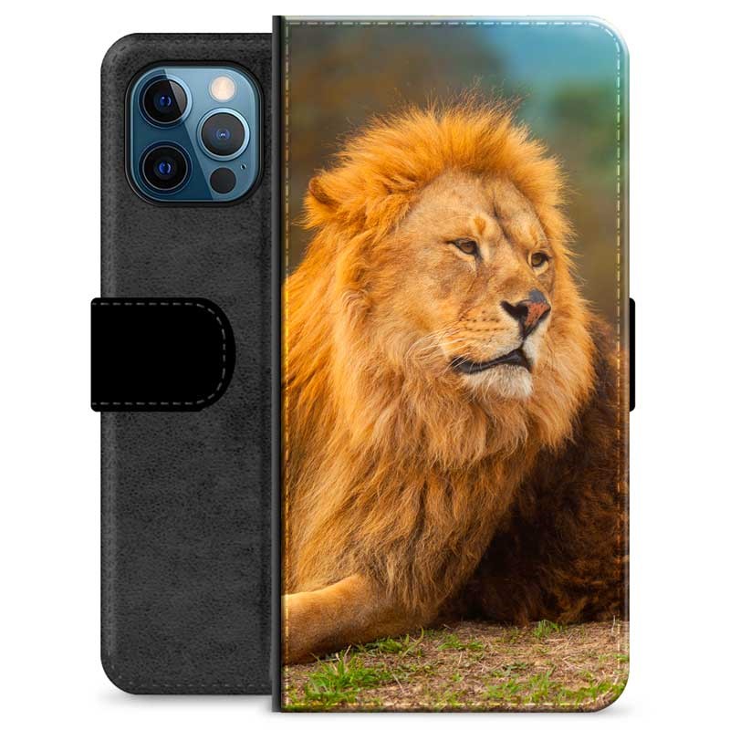 iPhone 12 Pro Premium Flip Cover med Pung - Løve