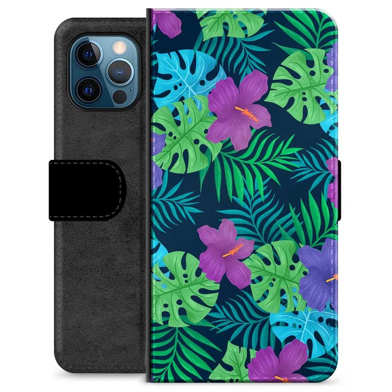 iPhone 12 Pro Premium Flip Cover med Pung - Tropiske Blomster