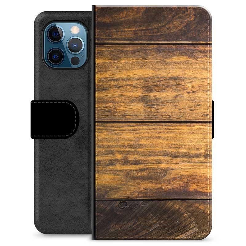 iPhone 12 Pro Premium Flip Cover med Pung - Træ