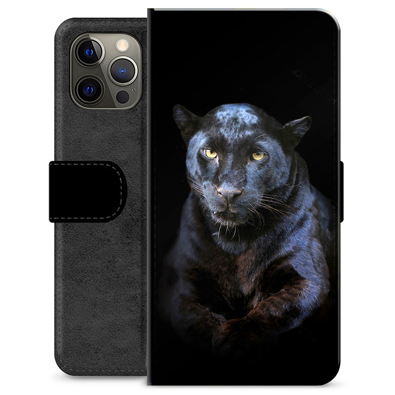 iPhone 12 Pro Max Premium Flip Cover med Pung - Sort Panter