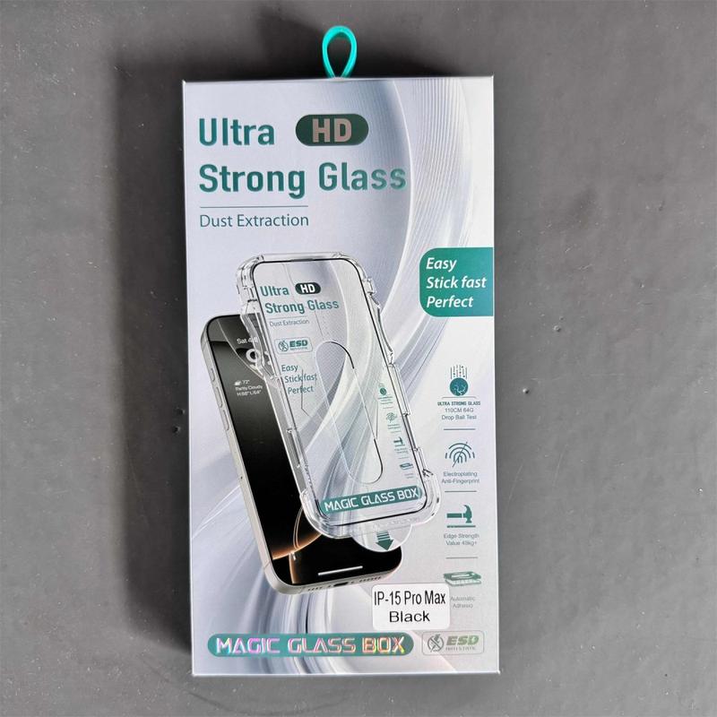 iPhone 15 Pro Max HD Skærmbeskyttelse Hærdet Glas med automatisk værktøj til fjernelse af støv - 9H