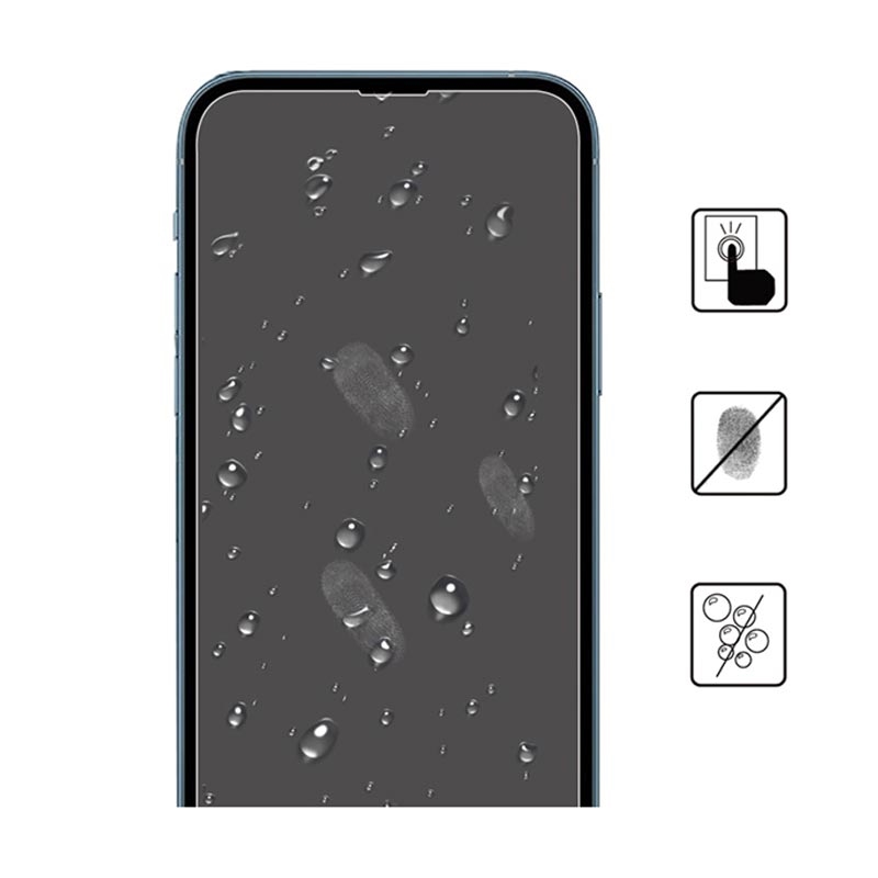 - Den oleofobiske belægning på hærdet glas hjælper med at afvise olie og vand, hvilket gør det lettere at holde skærmen ren.