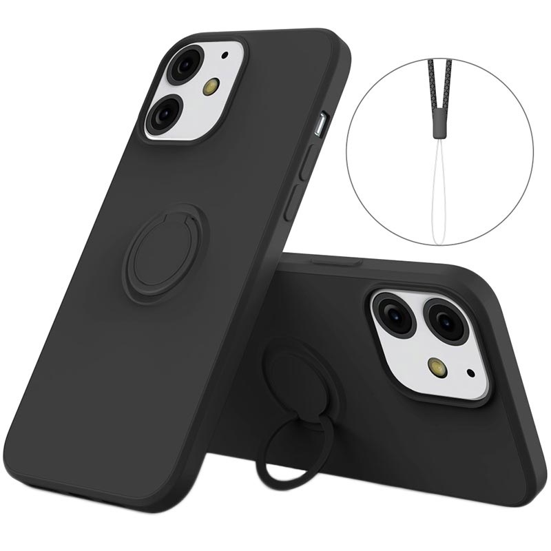iPhone 13 Liquid Silikone Cover med Ring Holder - Sort