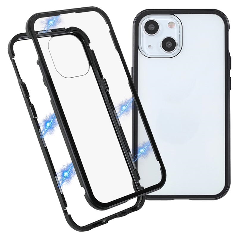 iPhone 13 Magnetisk Cover med Hærdet Glas - Sort