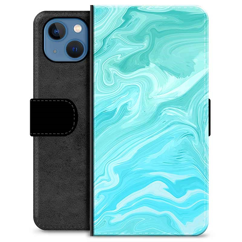 iPhone 13 Premium Flip Cover med Pung - Blå Marmor