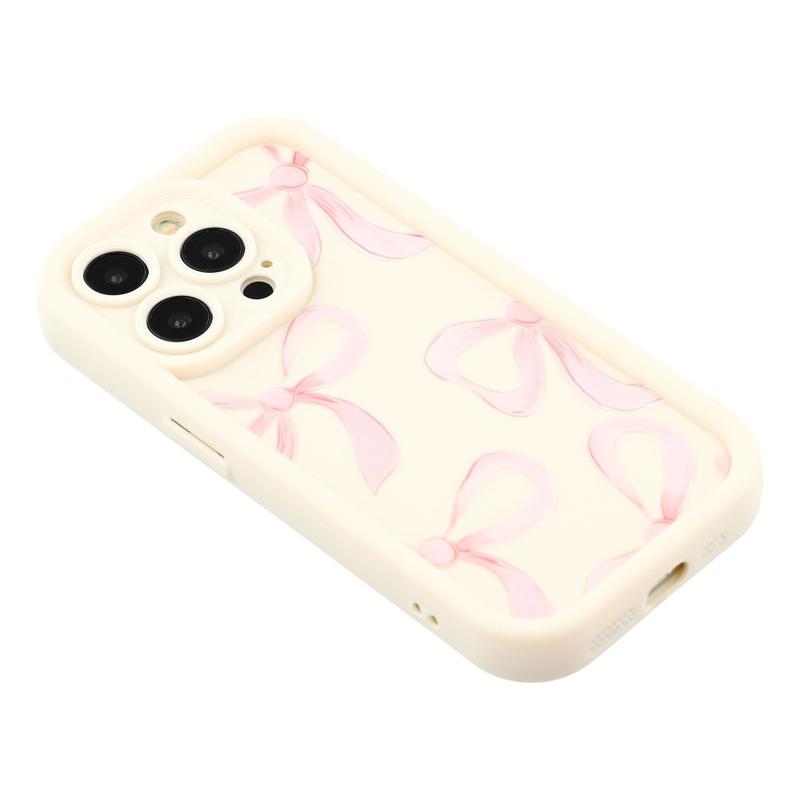 iPhone 13 Pro Stilfuldt stødsikkert TPU cover med forhøjede kanter - hvid / stor sløjfe