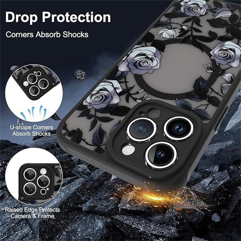 Giv din iPhone tidløs elegance med MagSafe-etuiet med rosenblomstmønster til iPhone 13 Pro Max. Dette etui kombinerer skønhed og beskyttelse og har et vintage-inspireret rosenprint, der tilføjer raffinement og samtidig beskytter din enhed. Det er fremstillet af en holdbar blanding af hård PC og fleksibel TPU og giver overlegen stødabsorbering og slagfasthed. Den indbyggede magnetiske ring sikrer fuld MagSafe-kompatibilitet for sikker fastgørelse og effektiv trådløs opladning.