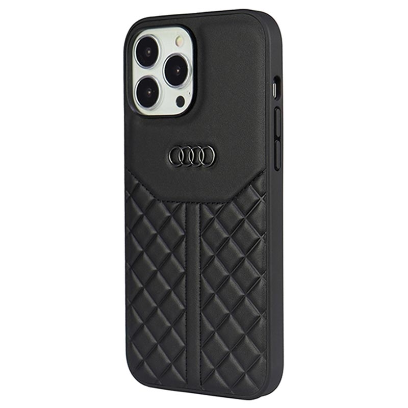 iPhone 13/13 Pro Audi Læder Dækket Cover i sort er det perfekte valg for dig, der ønsker at kombinere stil, funktionalitet og beskyttelse. Dette cover er designet med inspiration fra Audis luksuriøse bilinteriør og tilbyder en førsteklasses følelse og udseende. Med dette cover kan du være sikker på, at din iPhone 13 eller 13 Pro er godt beskyttet mod hverdagens slid og skader, samtidig med at du tilføjer et strejf af elegance til din enhed.