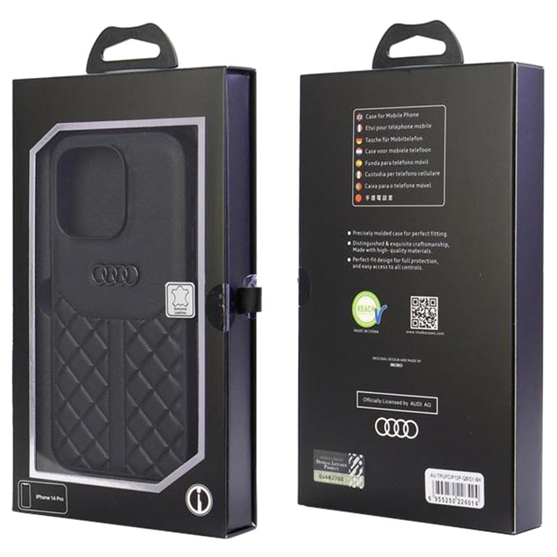 Med dette iPhone 13/13 Pro Audi Læder Dækket Cover - Sort, får du ikke kun en fremragende beskyttelse til din telefon, men også et stykke luksus og elegance, der afspejler din personlige stil.
