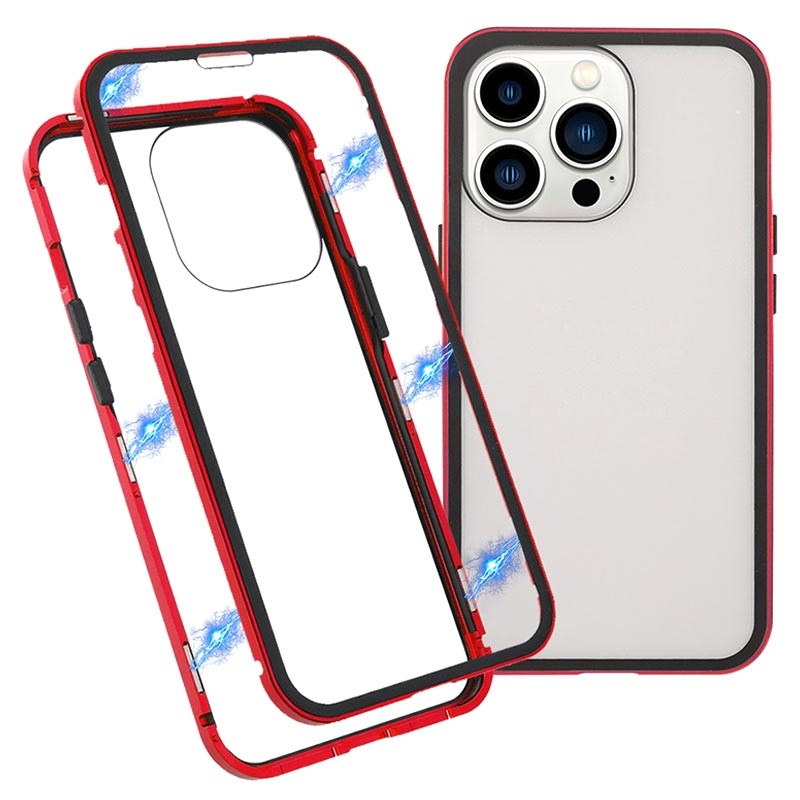 iPhone 13 Pro Magnetisk Cover med Hærdet Glas - Rød