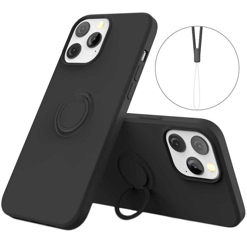 Liquid Silikone Cover med Ring Holder til iPhone 13 Pro Max - med Rem