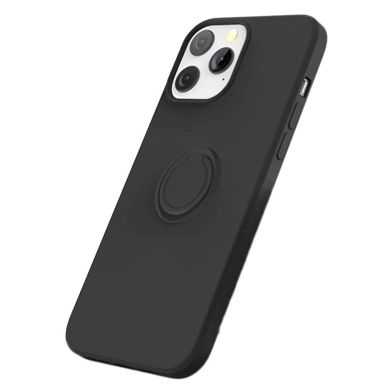 iPhone 13 Pro Max Liquid Silikone Cover med Ring Holder - Sort