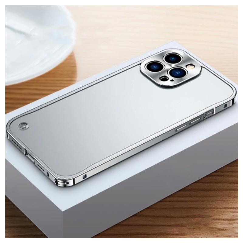 iPhone 13 Pro Max Metal Bumper med Plastik til Bagsiden - Sølv