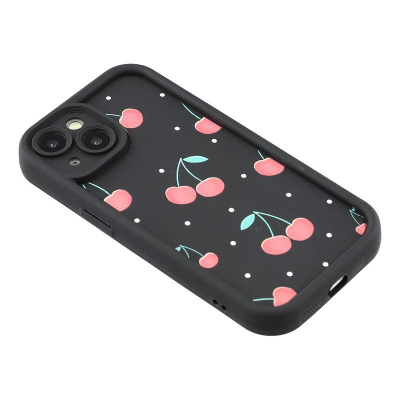 iPhone 15 Stilfuldt stødsikkert TPU cover med forhøjede kanter - sort / Kirsebær