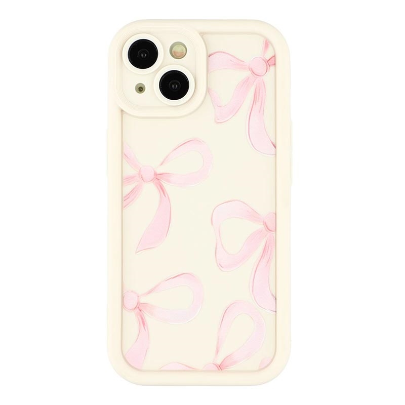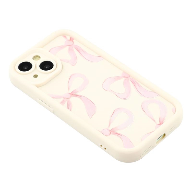 iPhone 13 Stilfuldt stødsikkert TPU cover med forhøjede kanter - hvid / stor sløjfe