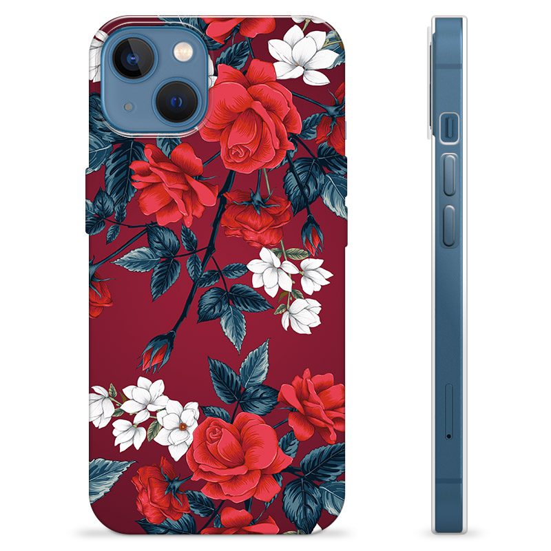 iPhone 13 TPU Cover er et perfekt tilbehør for dem, som ønsker at beskytte deres smartphone, mens de tilføjer et strejf af elegance og vintage charme. Dette cover har et øjenfangende design med et vintage blomstermønster, der kombinerer smukke røde roser og hvide blomster på en dyb bordeaux baggrund, der passer til en række personlige stilarter.