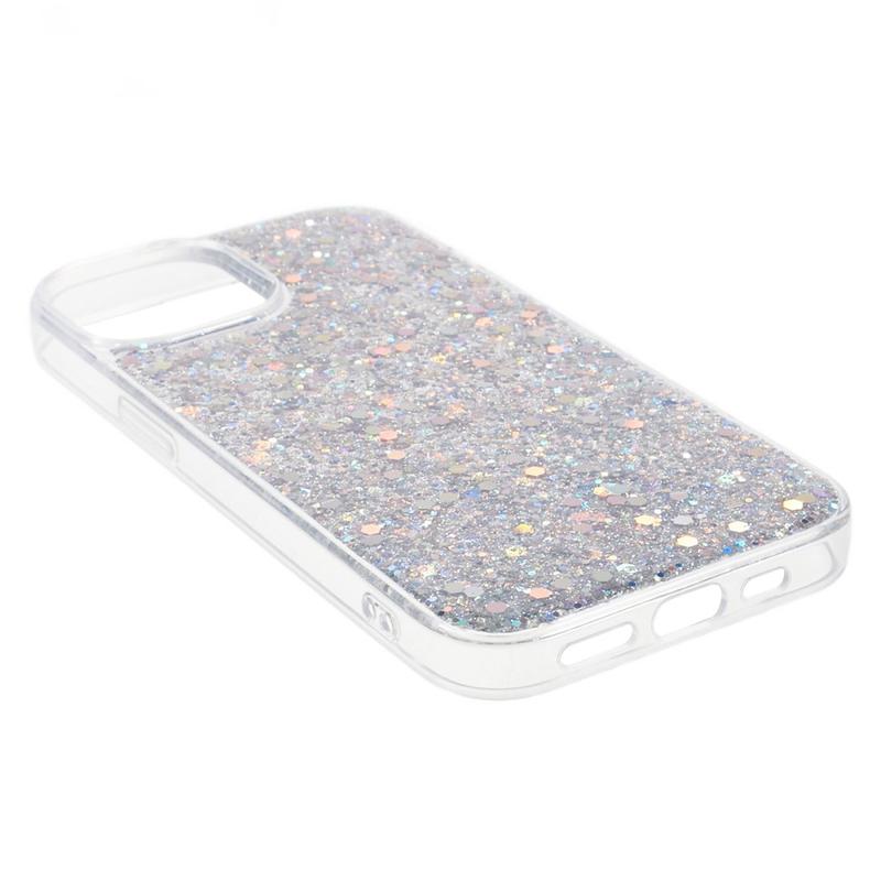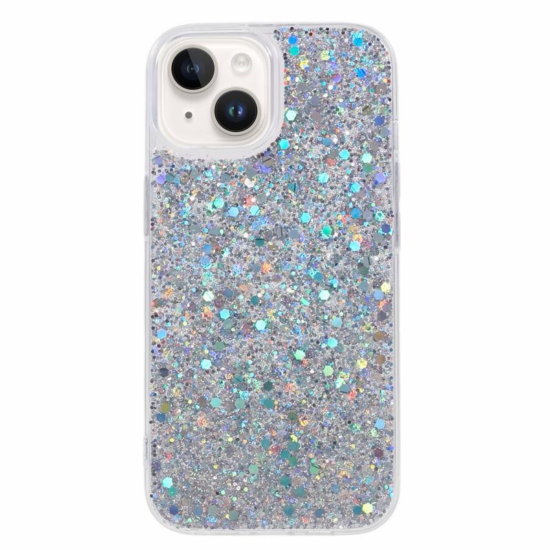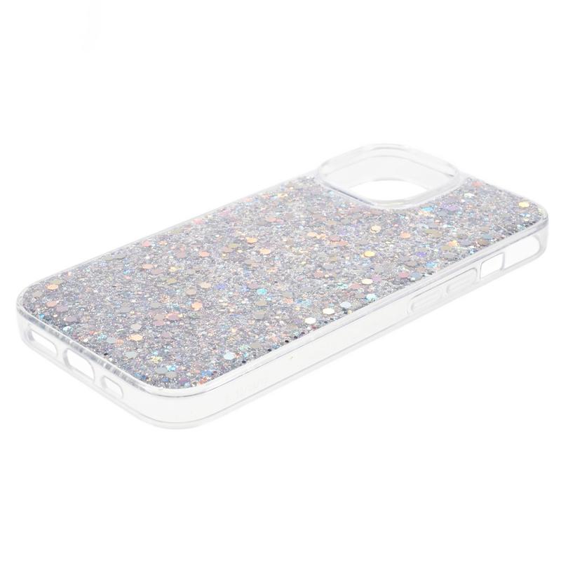 iPhone 14 Glitter Flakes TPU Cover - Sølv