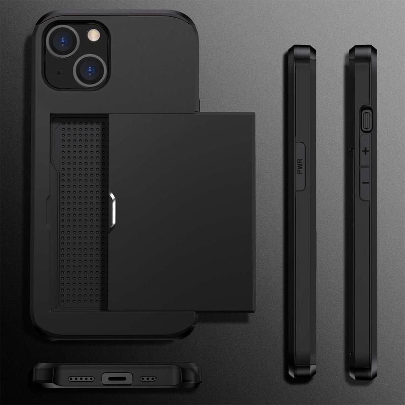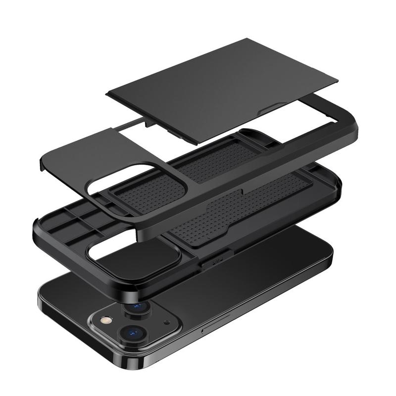 iPhone 14 Hybrid Cover med Glidende Kortslot - Sort