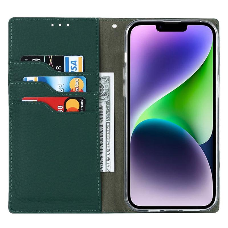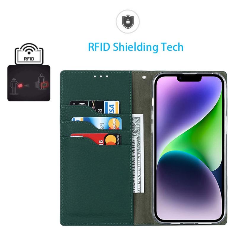 iPhone 14 Læderpung Cover med RFID - Mørkegrøn