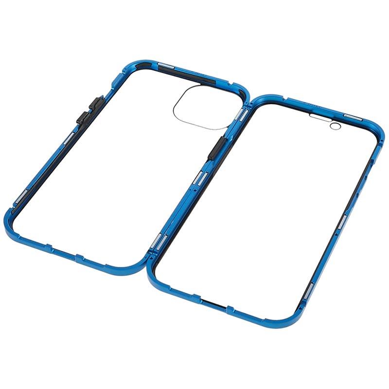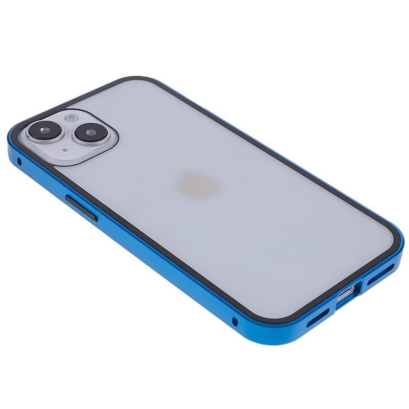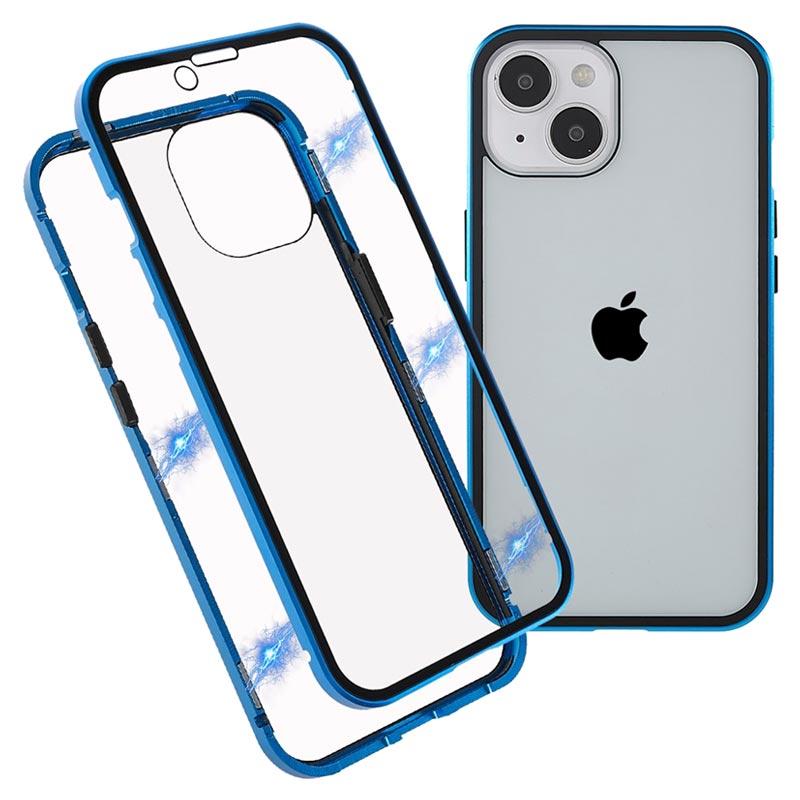 iPhone 14 Magnetisk Cover med Hærdet Glas - Blå