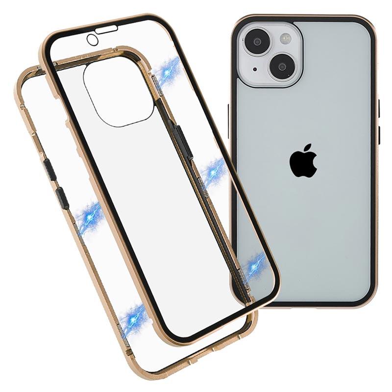 iPhone 14 Magnetisk Cover med Hærdet Glas - Guld