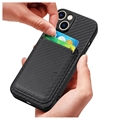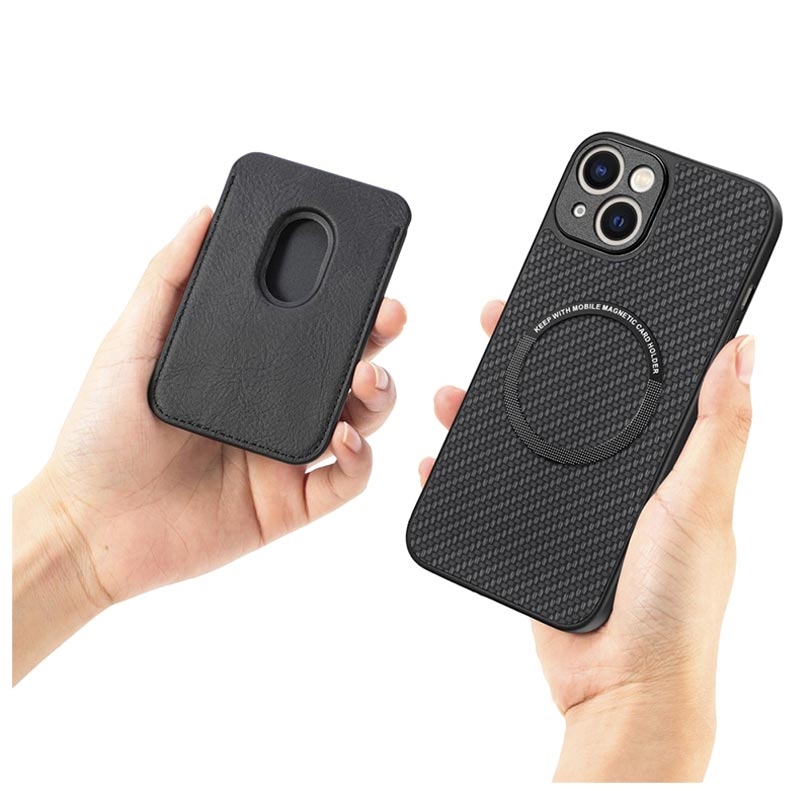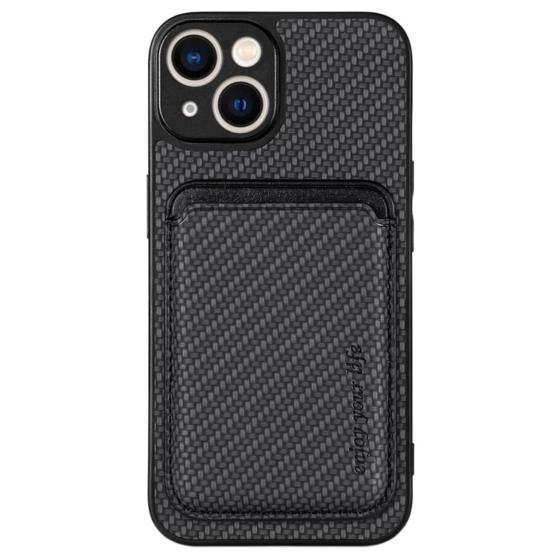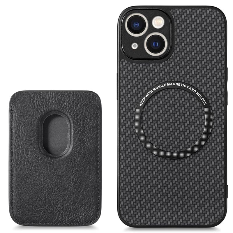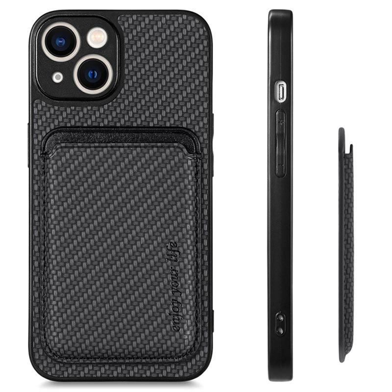 iPhone 14 Magnetisk Cover med Kortholder - Karbonfiber - Sort