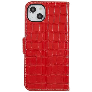 Til iPhone 14 Plus Ægte okselæder Anti-drop telefonetui Crocodile Texture Stand Fuld beskyttelse Flip Wallet Cover