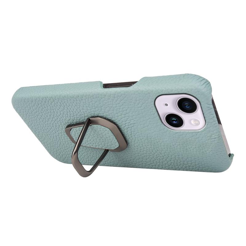 Til iPhone 14 Plus ægte læderbelagt pc-beskyttende telefoncover Ringholder Kickstand Design Litchi Texture Skridsikkert stødsikkert etui