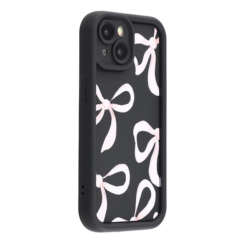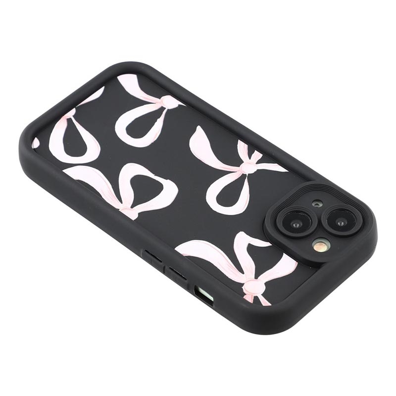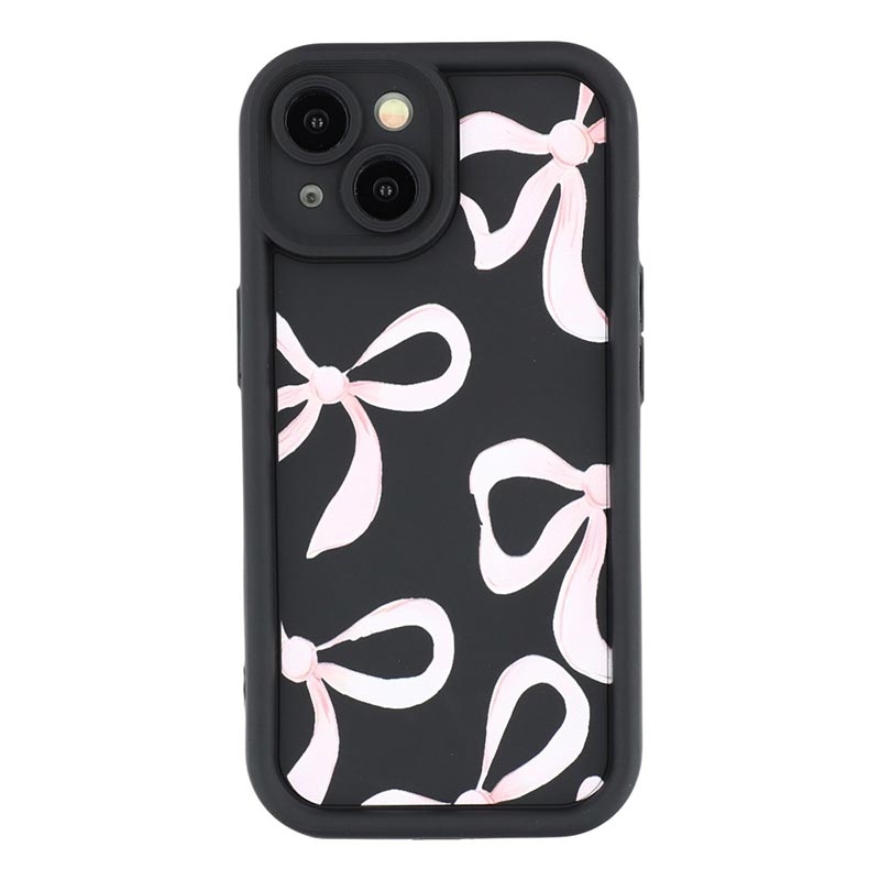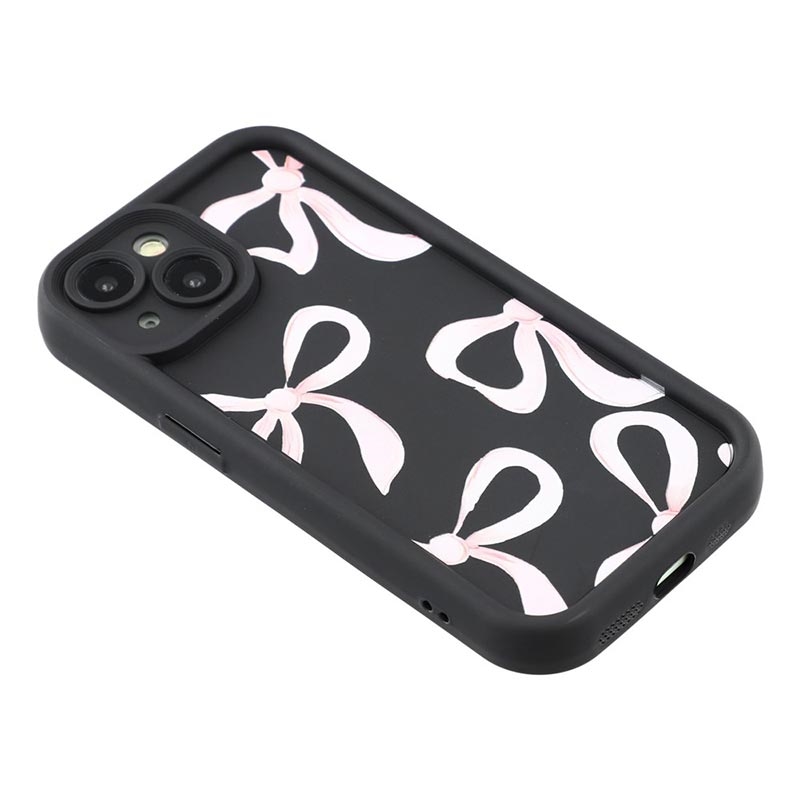 iPhone 14 Plus Stilfuldt stødsikkert TPU cover med forhøjede kanter - sort / stor sløjfe