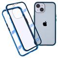 iPhone 14 Plus har stort fladt frontglas, plane aluminiums-kanter og en tydelig kameraramme med to linser og blitz. Coveret skal derfor være skåret præcist efter 160,8 × 78,1 × 7,8 mm, så siderne er beskyttet uden at stikke ud over skærmens kanter, og kameraøen får en hævet ramme, der beskytter linserne, når telefonen ligger på bordet.