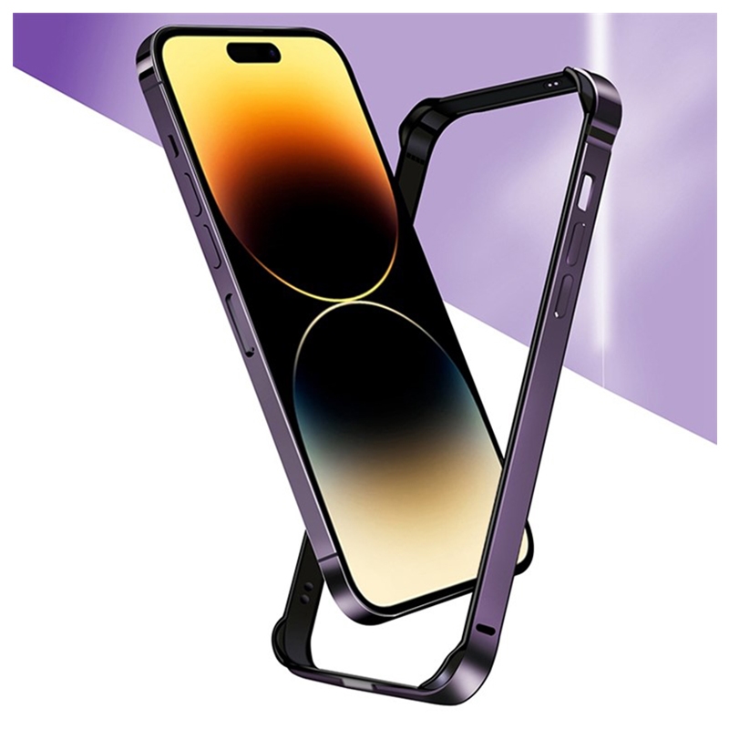 iPhone 14 Pro Metal Bumper med Forhøjede Kanter - Lilla