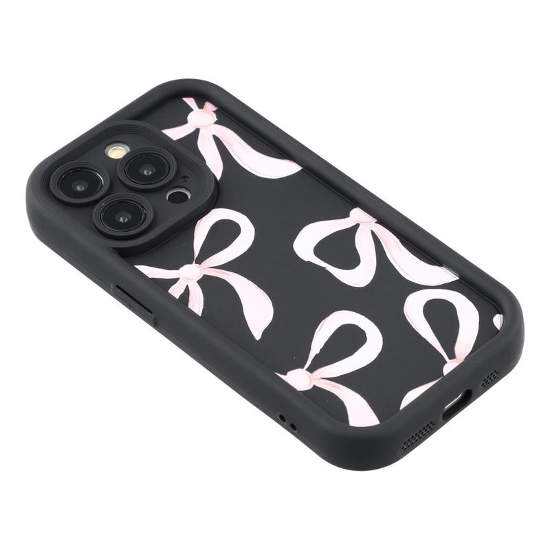 iPhone 14 Pro Max Stilfuldt stødsikkert TPU cover med forhøjede kanter - sort / stor sløjfe