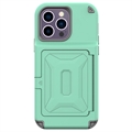 - iPhone 14 Pro cover med kortholder – Til 1–2 kort. Findes som integreret løsning eller modulopbygning via magnetbaserede wallets, der kan klikkes på eller af afhængigt af behov.