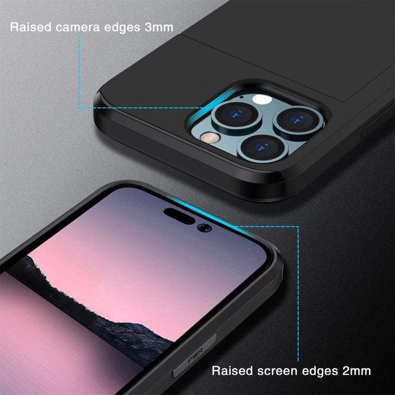 iPhone 14 Pro Hybrid Cover med Glidende Kortslot - Sort