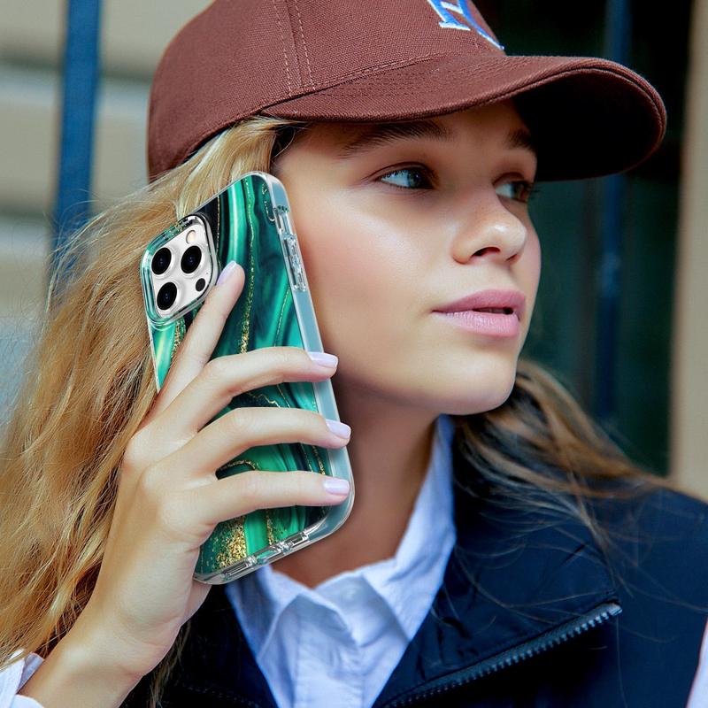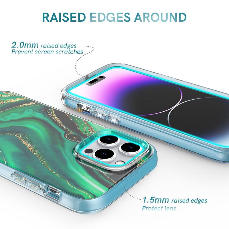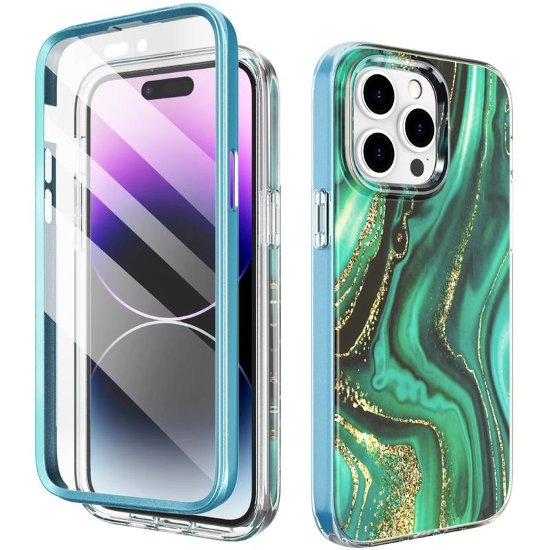 iPhone 14 Pro Max Ahastyle WE13 360 Beskyttelse Hybrid Cover - Grøn marmor