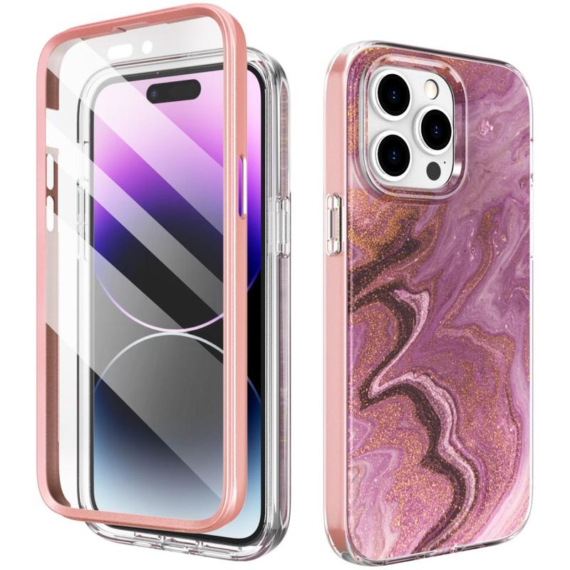 iPhone 14 Pro Max Ahastyle WE13 360 Beskyttelse Hybrid Cover - Lilla marmor