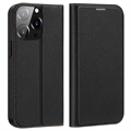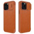 iPhone 14 Pro Max læder cover - Slankt premium-læder med mikrofor og diskret hævet kameraramme, der beskytter den firkantede kameraø uden at fylde meget. - Passer til business- og fashion-brugere, som ønsker eksklusivt look og moderat faldbeskyttelse, ikke hårdt byggepladsbrug.