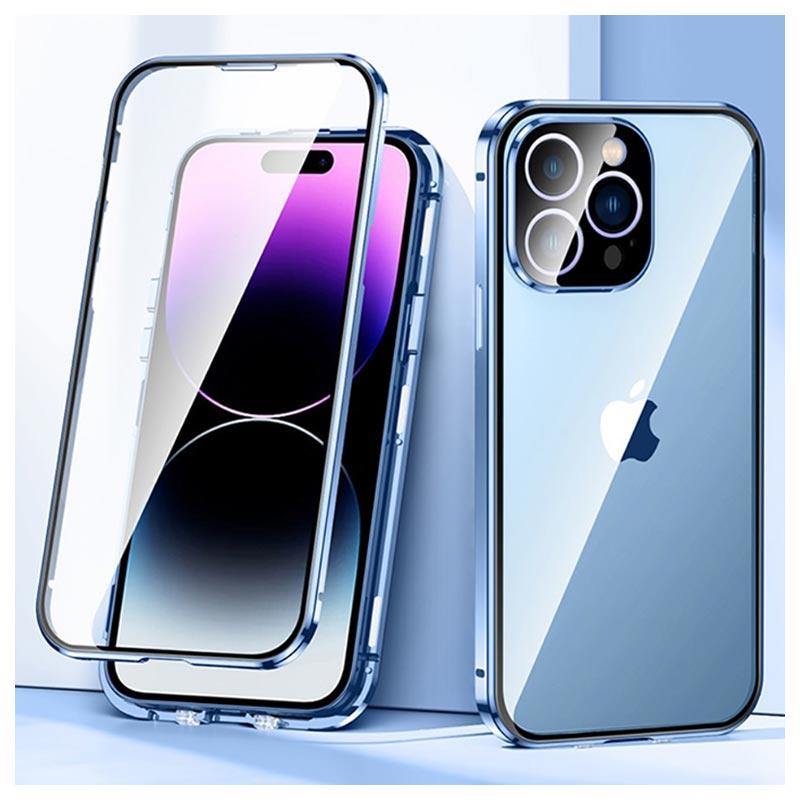 iPhone 14 Pro Max Magnetisk Cover med Hærdet Glas - Blå