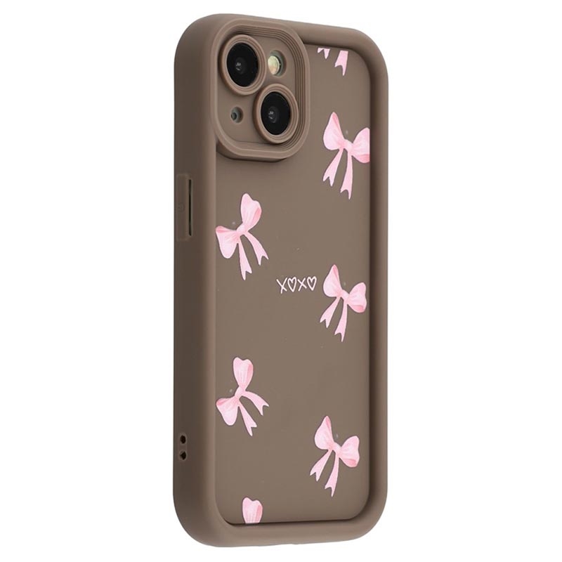 iPhone 14 Stilfuldt stødsikkert TPU cover med forhøjede kanter - Brun / Sløjfe
