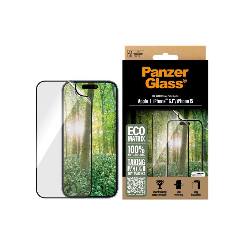 PanzerGlass Eco Matrix Ultra-Wide Fit skærmbeskytter med EasyAligner til iPhone 15, iPhone 16 - 100 % genanvendt