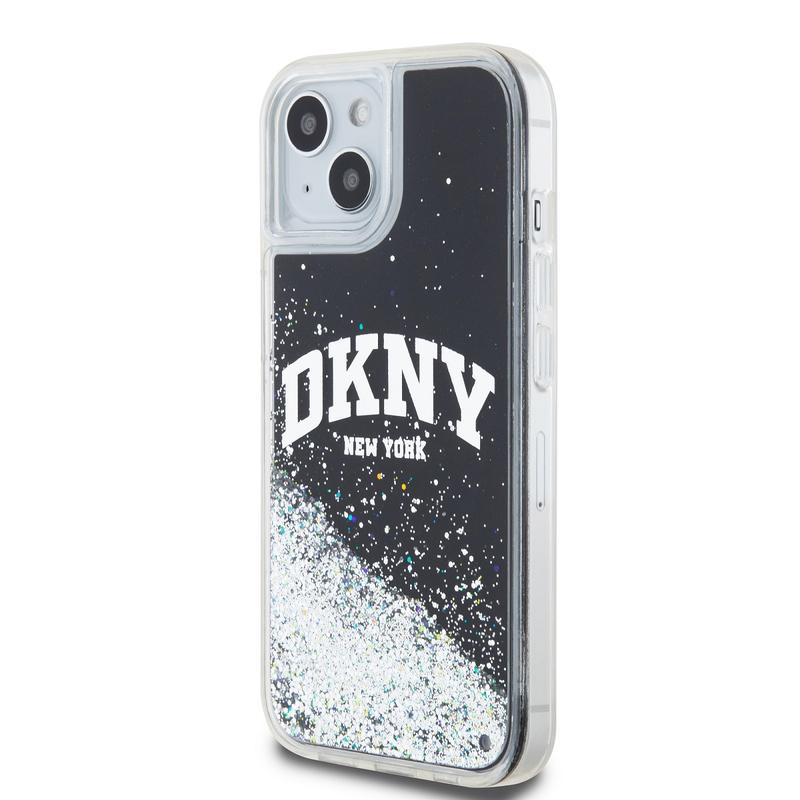 iPhone 15 DKNY Liquid Glitter Arch Logo Cover - Sort