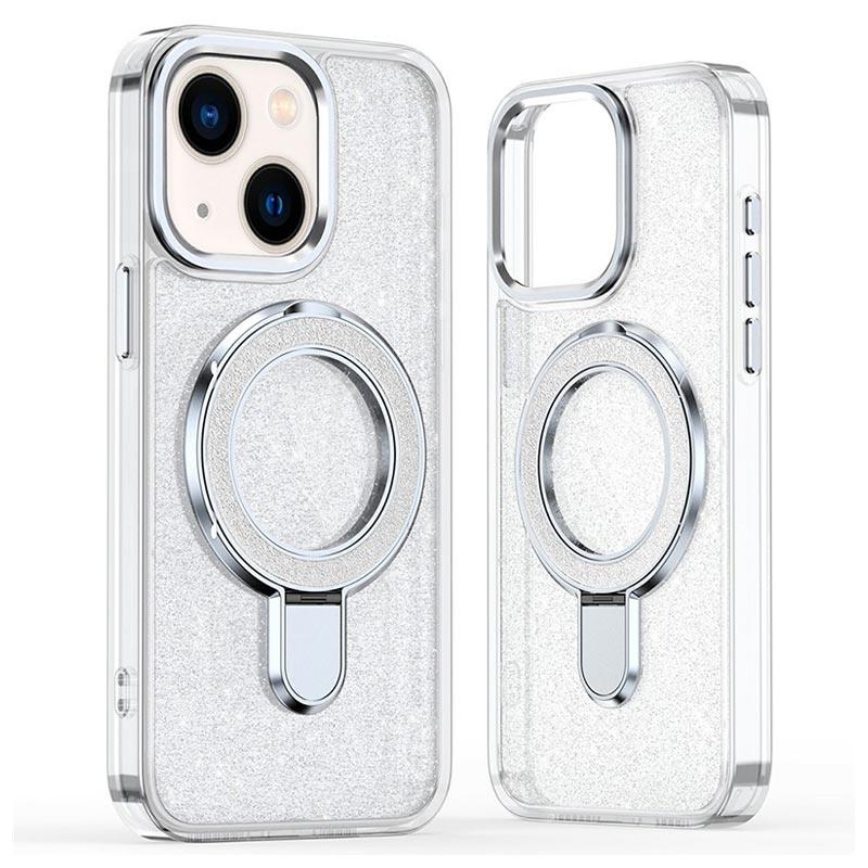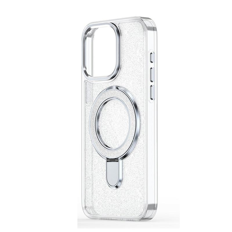 iPhone 15 Glitter Hybrid cover med kickstand - MagSafe-kompatibel - Gennemsigtig