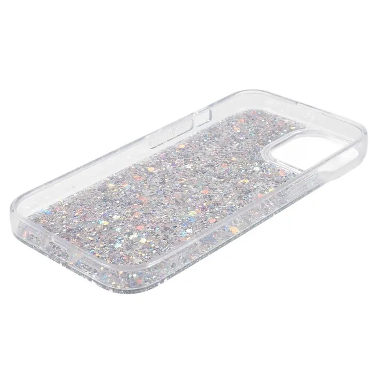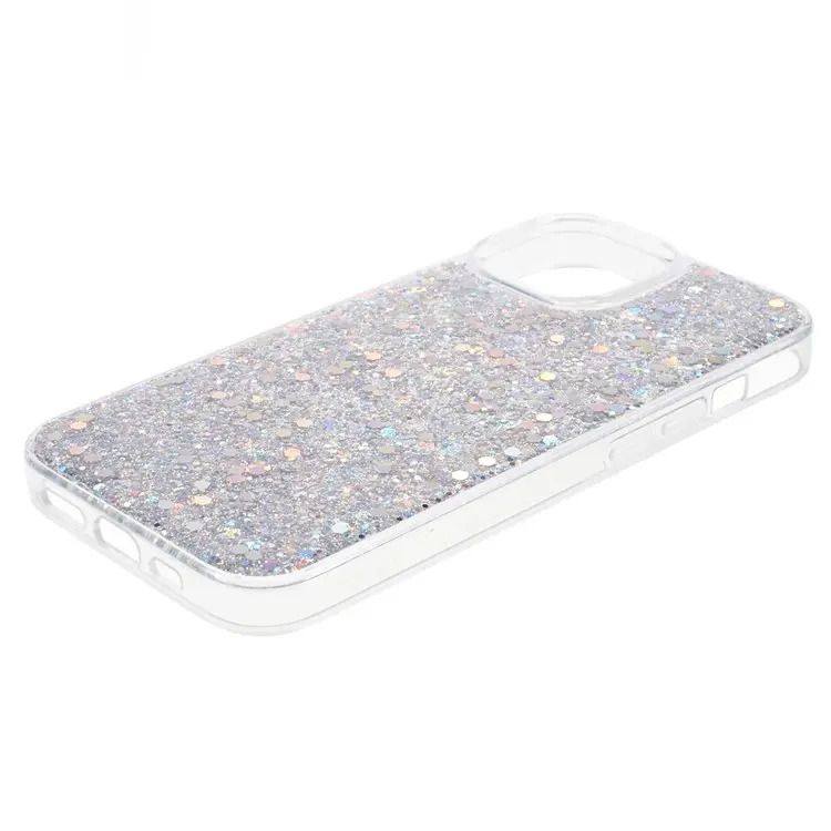 iPhone 15 Glitter Flakes TPU Cover - Sølv