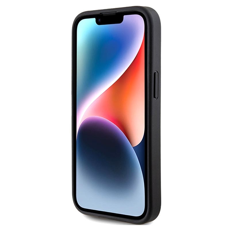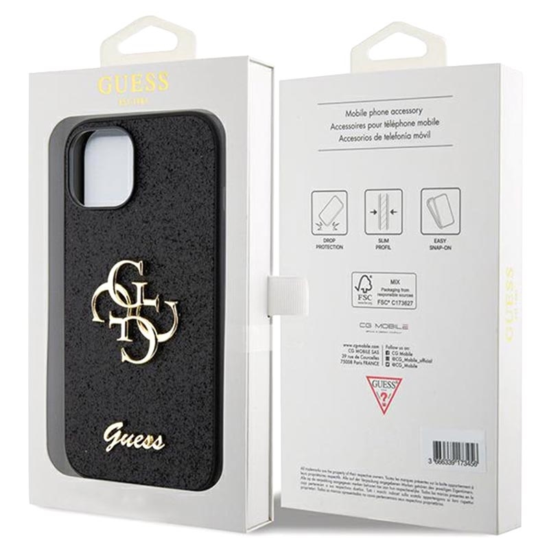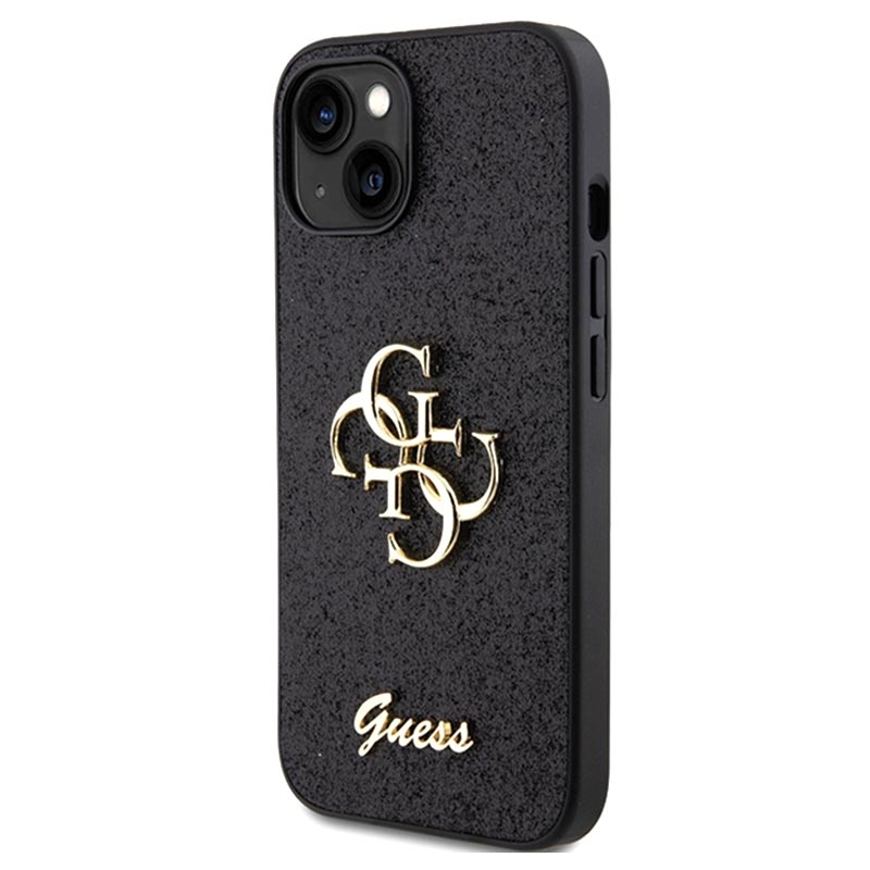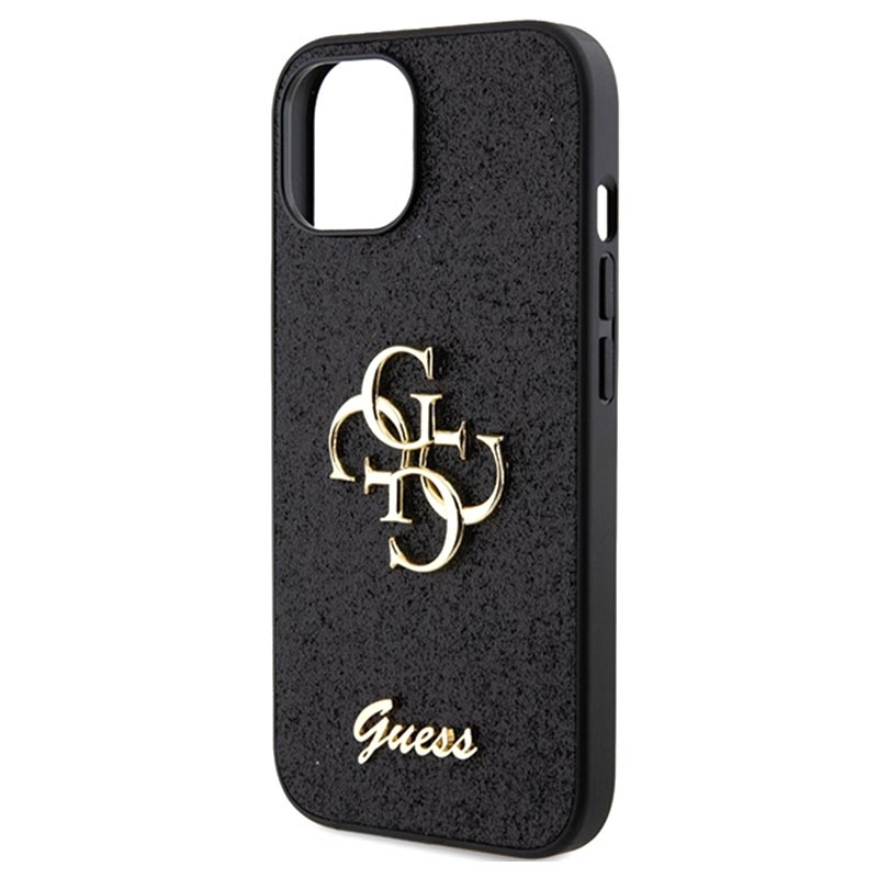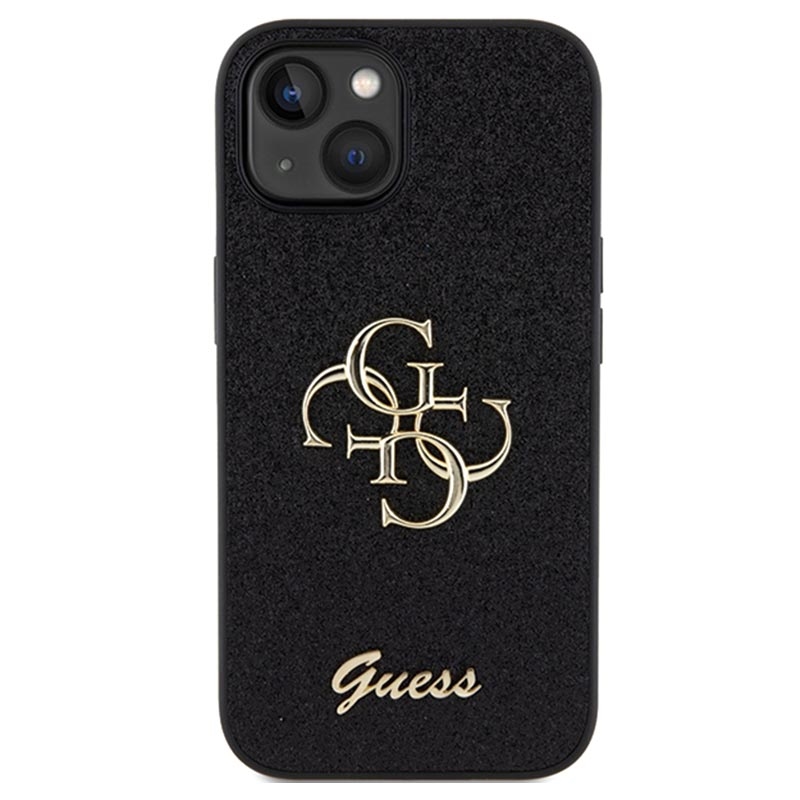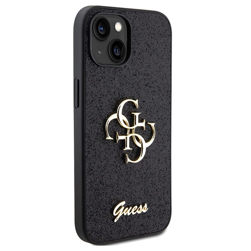 iPhone 15 Guess Fixed Glitter 4G Metal Logo Cover - Sort